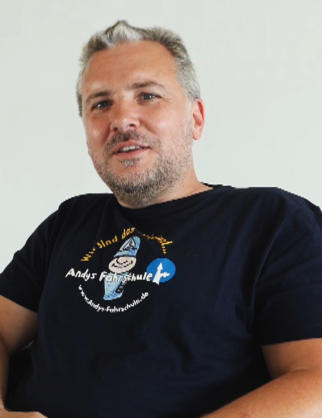 Andy ist der Chef des Hauses, Fahrlehrer aus Leidenschaft und kümmert sich weltweit um die Unterwasserwelt. Wer ihn live erleben will, der schaut doch einfach mal in Giebelstadt zur Motorrad- oder Traktor-Theorie vorbei. Andy bildet alle Klassen aus, von Mofa bis zur Klasse T. Für alle Fragen rund um den Führerschein ist Andy der Spezialist.